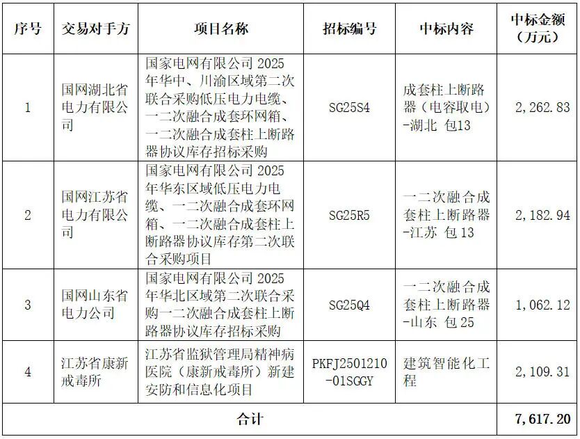 近日,金智科技(002090)成功中标国家电网有限公司下属省公司配网相关项目,中标金额5,507.89万元;全资子公司江苏东大金智信息系统有限公司中标“江苏省监狱管理局精神病医院(康新戒毒所)新建安防和信息化项目”,中标金额2,109.31万元。中标金额合计7,617.20万元。