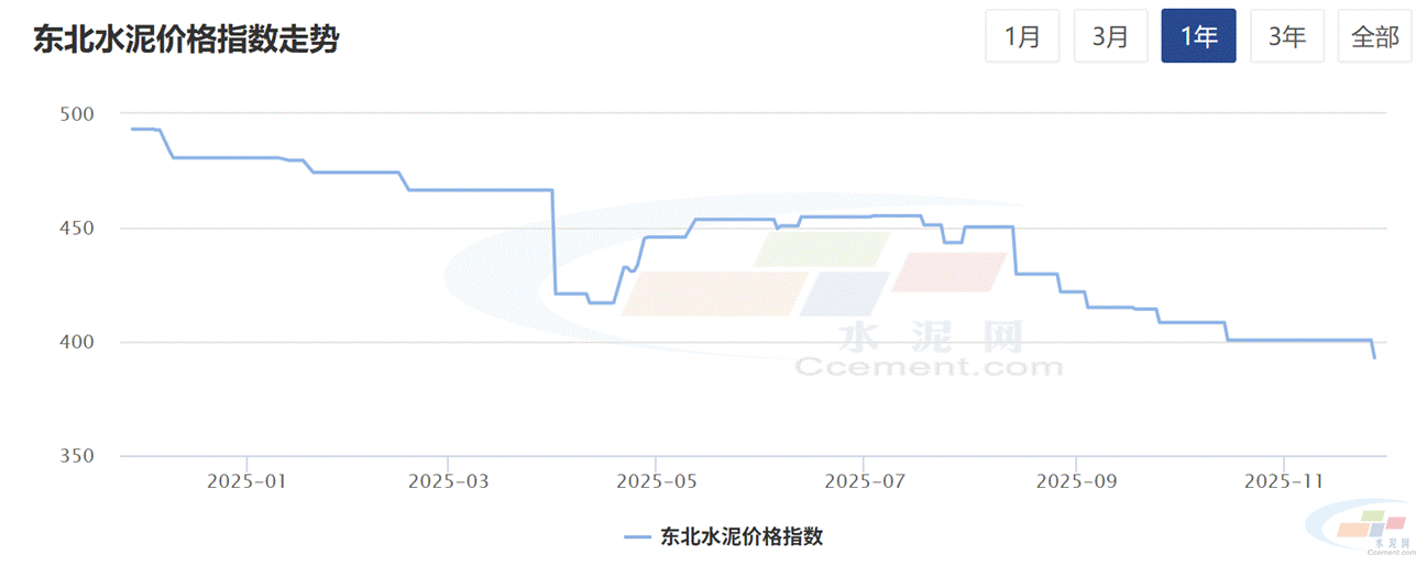 东北:东北地区水泥市场基本结束,仅剩少数室内项目尚有零星需求,整体市场弱稳,进入有价无市状态,价格调整意义不大。